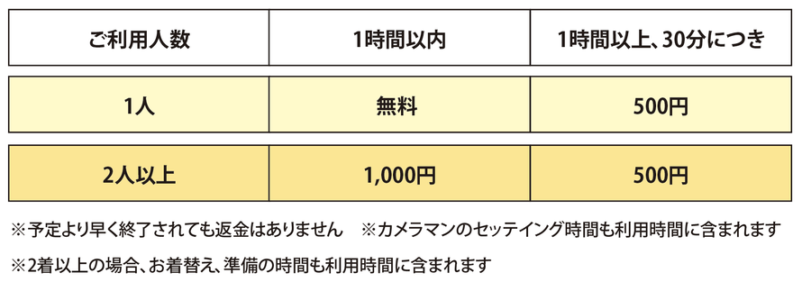 ○撮影サービス利用開始後のお着替えの時間等も撮影サービス時間に含みます
